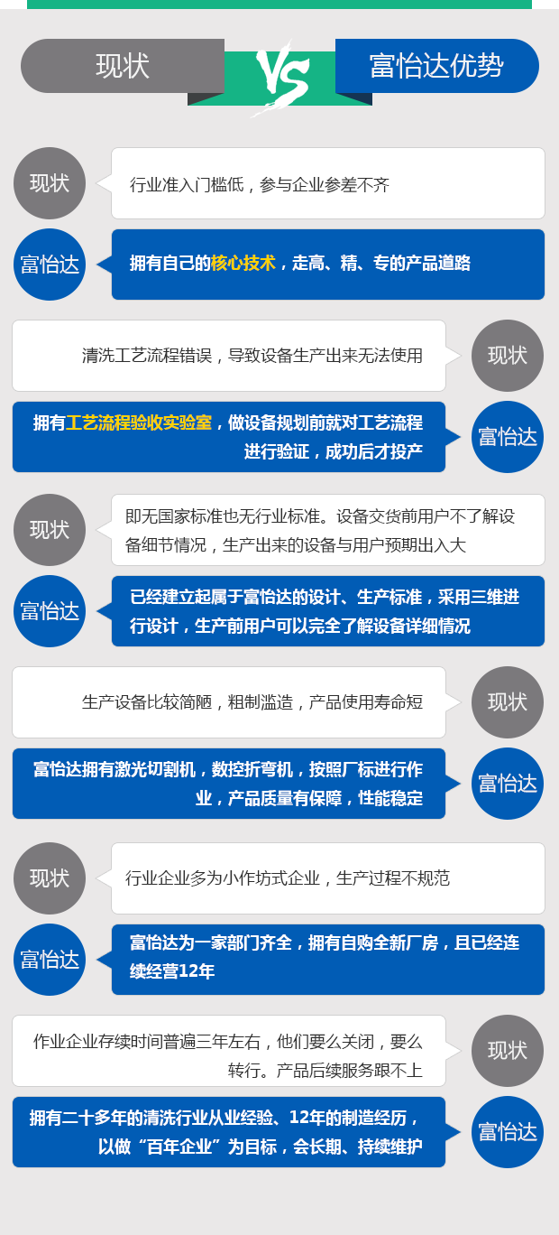 清洗行業(yè)均為行業(yè)專用設(shè)備,目前即無國家標(biāo)準(zhǔn),也沒有形成行業(yè)標(biāo)準(zhǔn),所以設(shè)備是各取所長,富一達(dá)的自動超聲波清洗機(jī),通過式超聲波噴淋清洗機(jī)、往復(fù)式旋轉(zhuǎn)噴淋清洗機(jī),渦旋式清洗機(jī)均按富怡達(dá)廠標(biāo)標(biāo)準(zhǔn)進(jìn)行設(shè)計、制作。